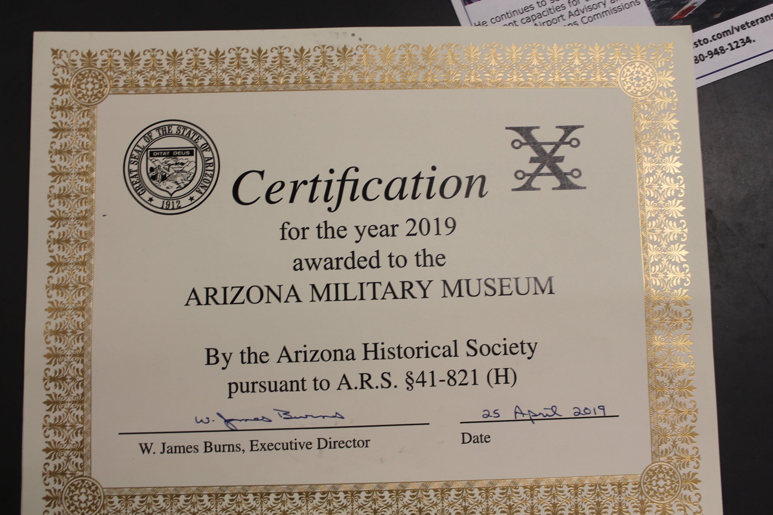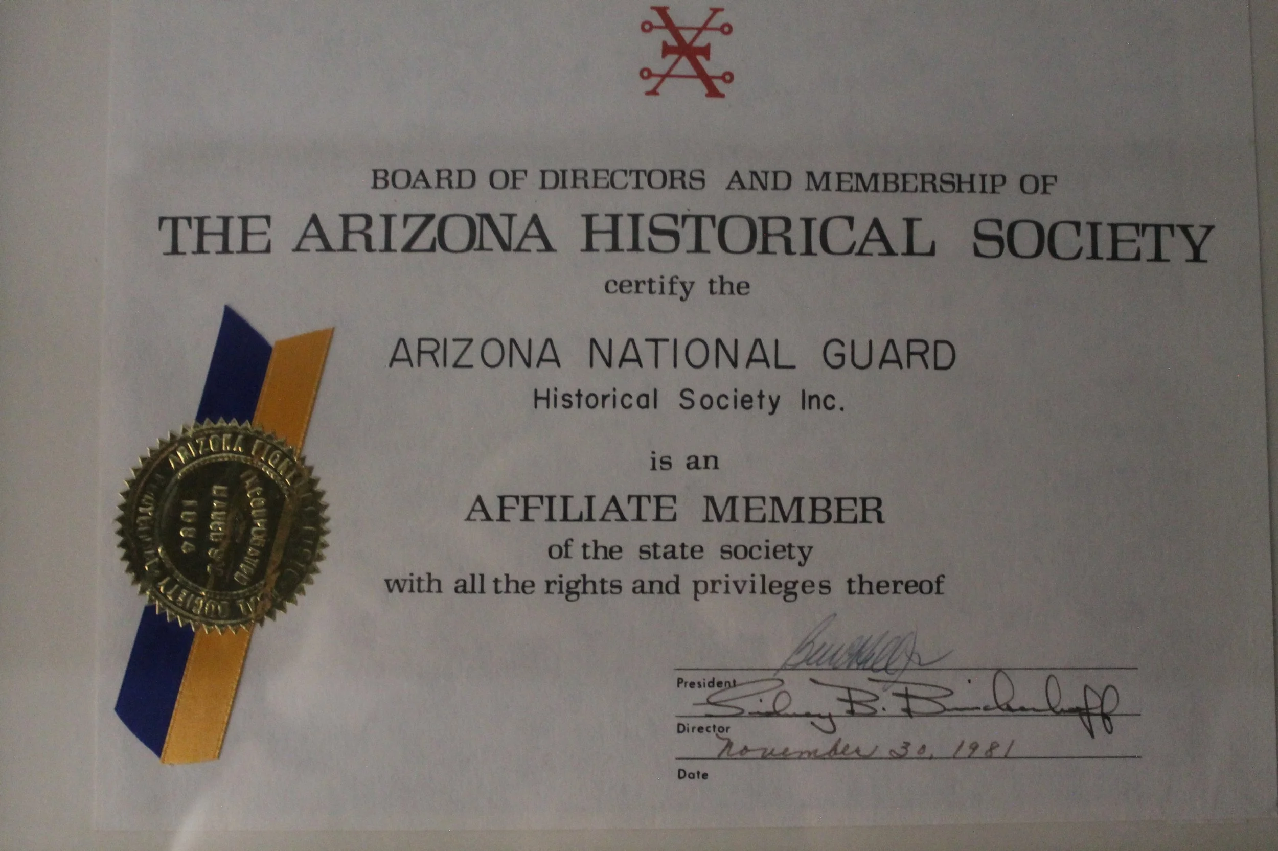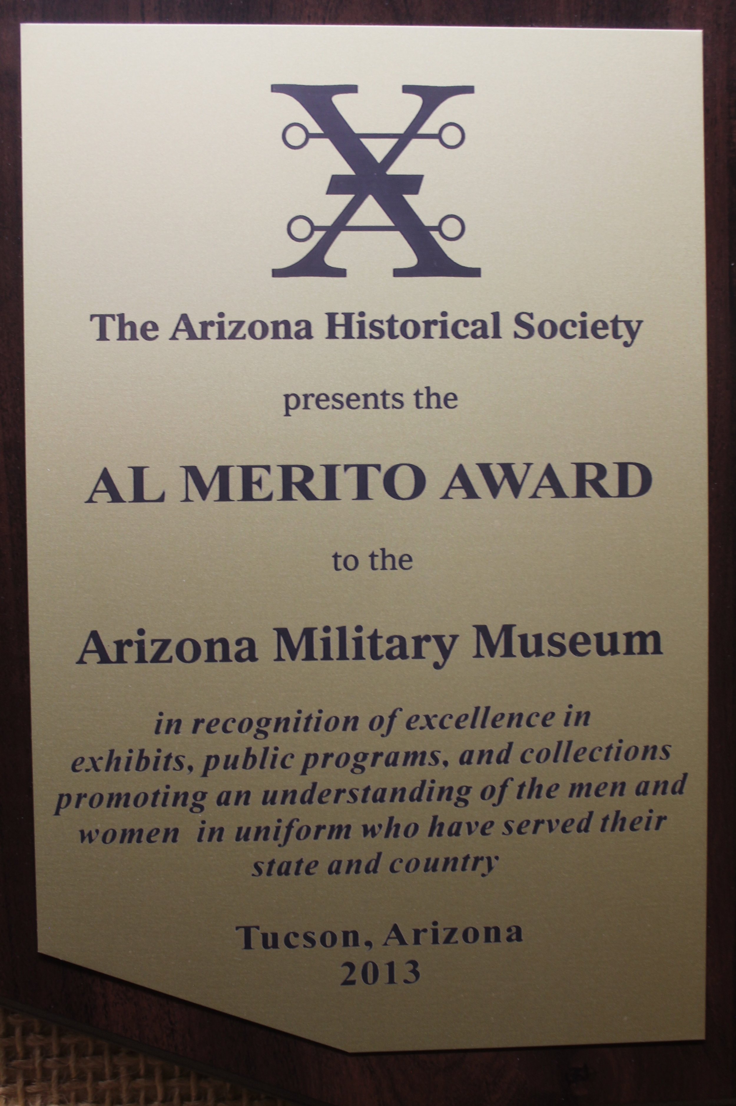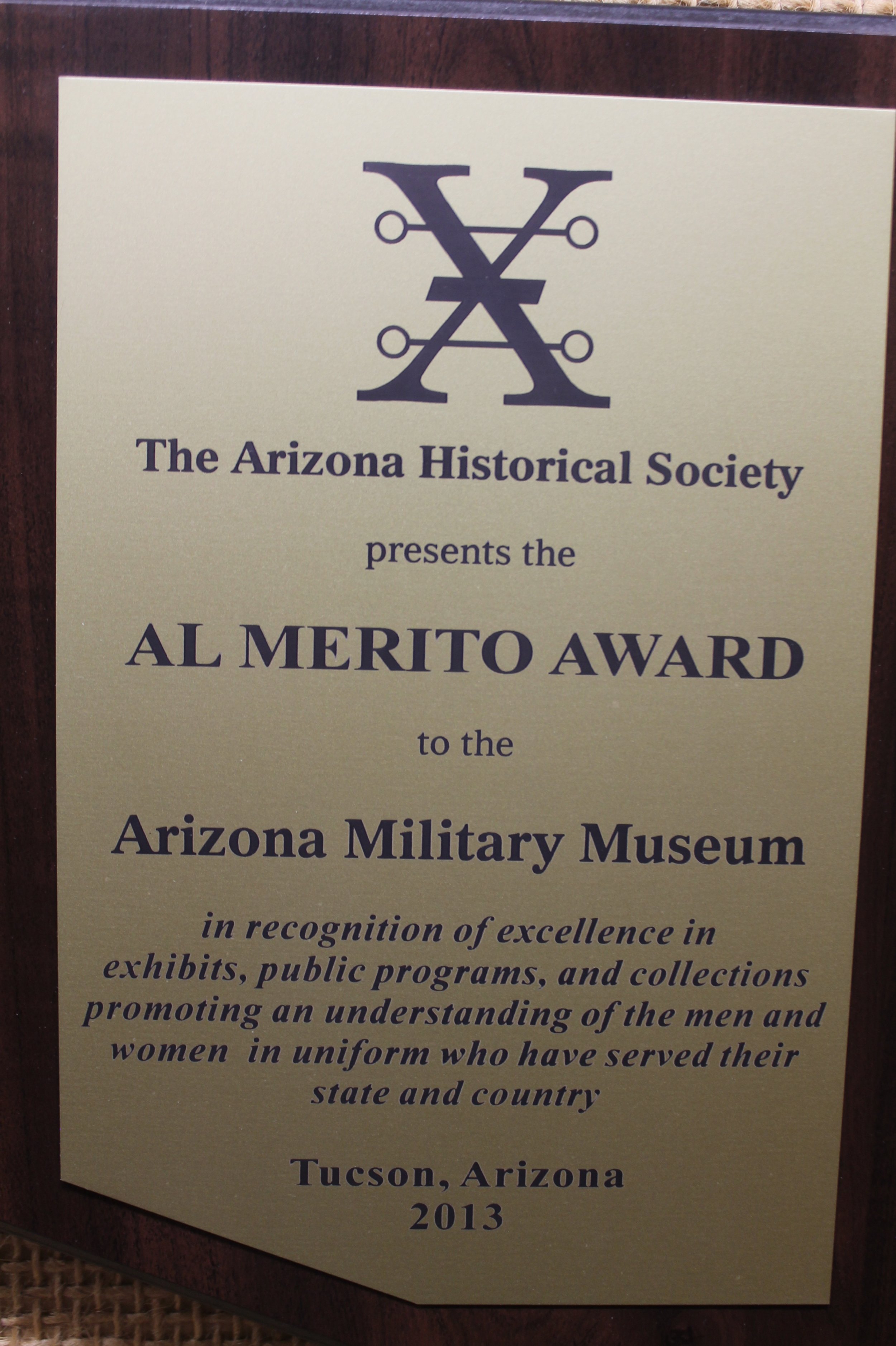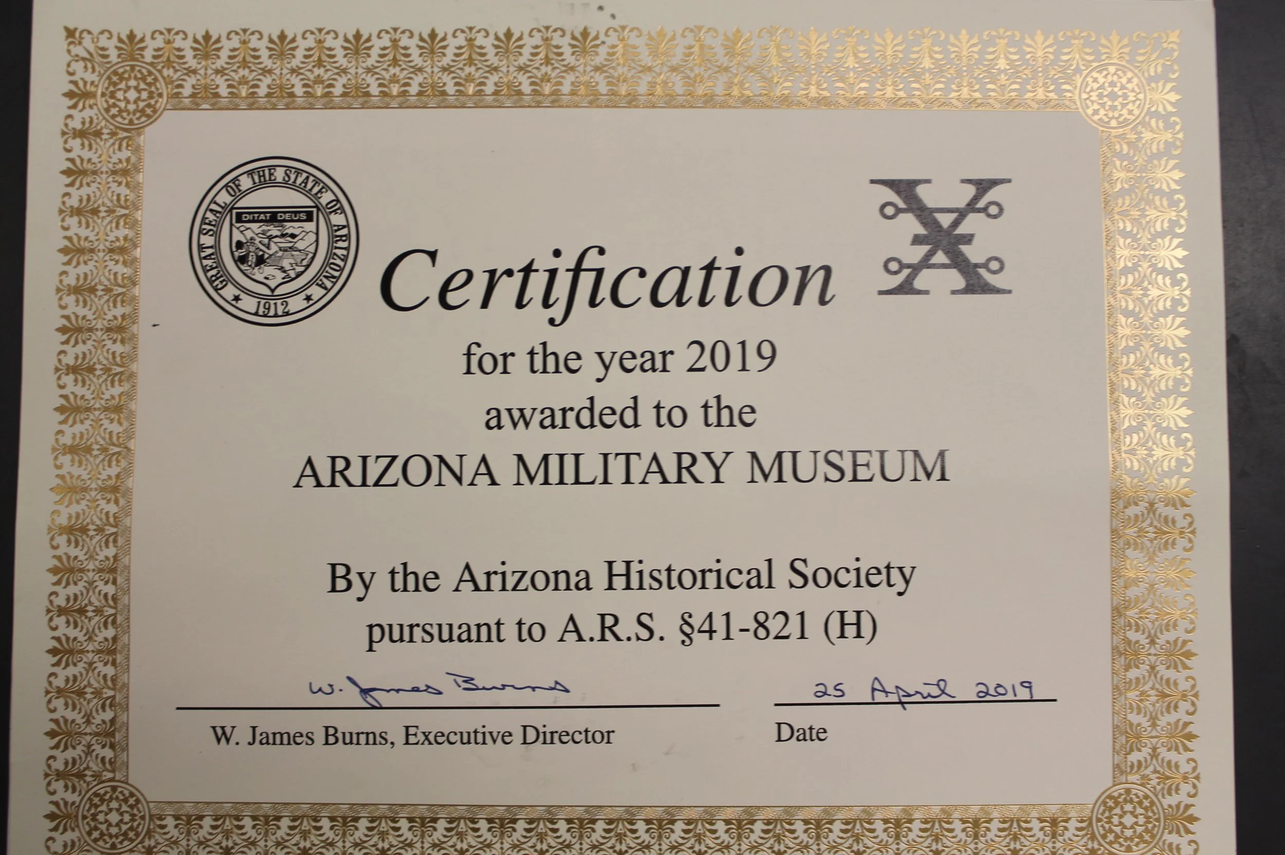 This page showcases some of the awards the Arizona National Guard Historical Society, dba Arizona Military Museum, has received. Use arrows under the images to scroll through all the awards.